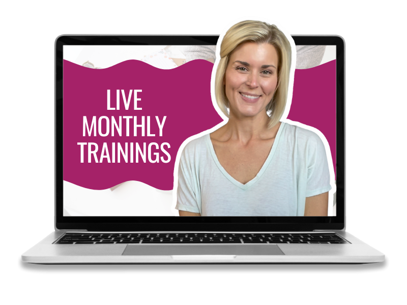 Beyond what you’ll learn in the self-paced video content, you’ll also get to join in on monthly trainings designed to propel your business growth strategies through branding and design. All live calls will be recorded and added to the membership platform so you can watch them on your own time if you can’t attend live!